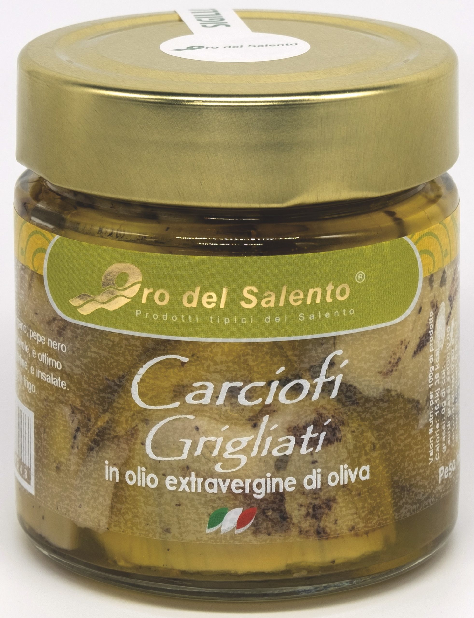 I Carciofi Grigliati Oro del Salento nascono da una lavorazione artigianale attenta e rispettosa della materia prima, pensata per esaltare al massimo il sapore autentico del carciofo Violetto, una delle varietà più apprezzate del Mediterraneo. Per questa specialità utilizziamo solo il cuore del carciofo, la parte più dolce, morbida e pregiata, selezionata manualmente per garantire qualità e uniformità.